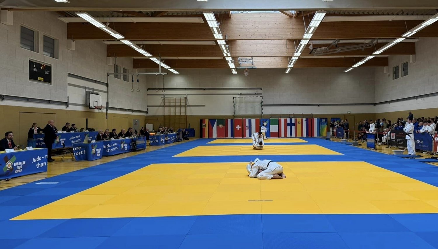Das Wochenende stand neben dem Bundesligafinale komplett unter der Flagge der Kata. Zunächst starteten am Samstag beim ersten EJU-Kata-Turnier in Deutschland 70 Teams aus 13 Nationen. Es war der letzte internationale Vergleich vor den in einem Monat in Las Vegas/USA stattfindenden Weltmeisterschaften. Dabei nutzten zahlreiche Teams noch einmal die Chance, die letzten Feinabstimmungen unter Wettkampfbedingungen auf die Matte zu bringen.